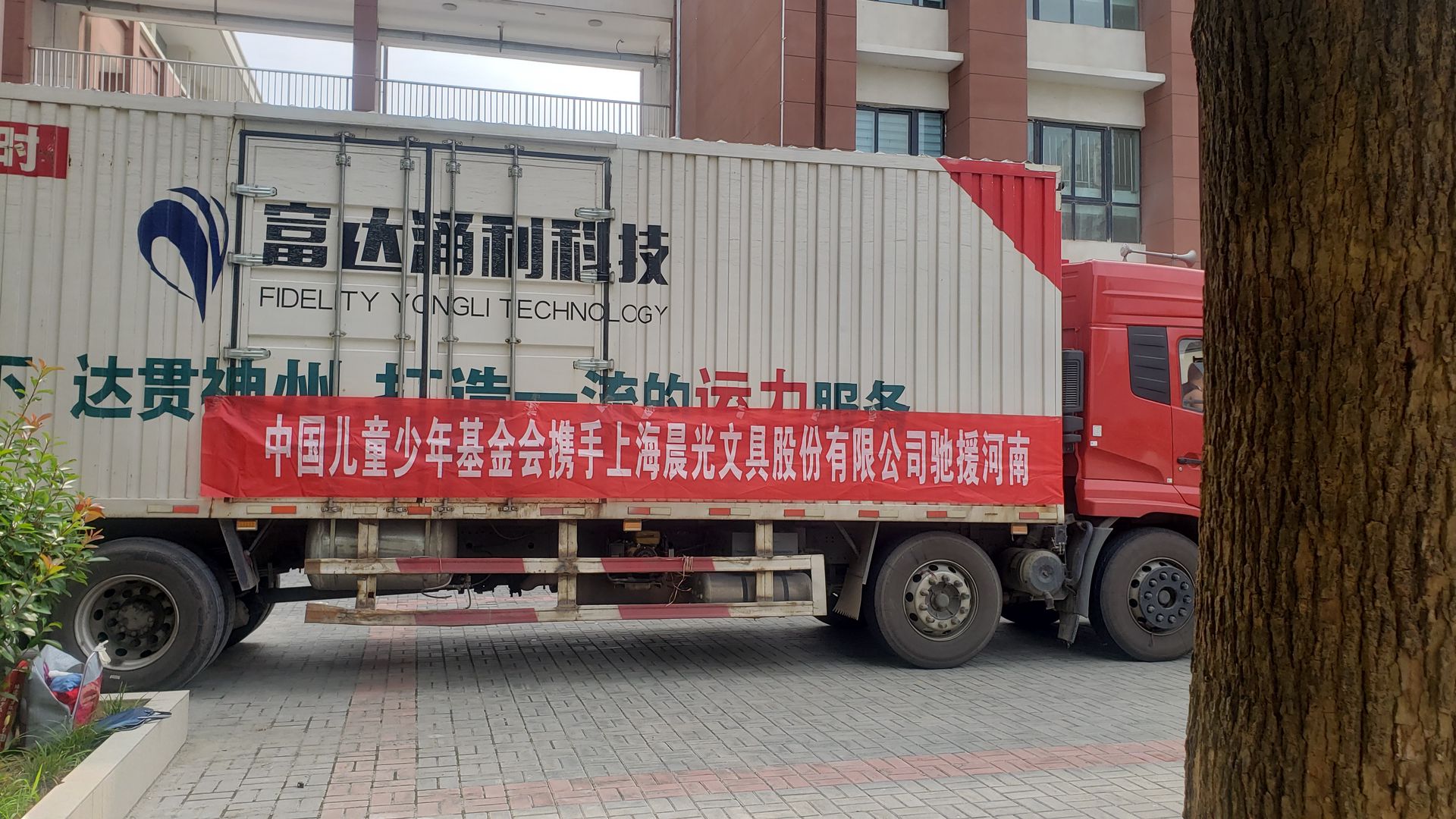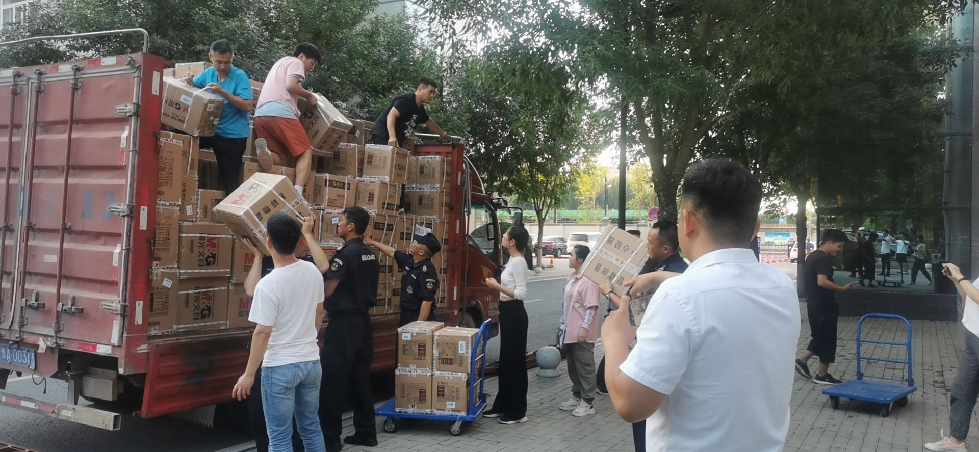 部分慰问物资从上海奉贤运出,感谢合作伙伴奉城安能物流免费运送救灾物资