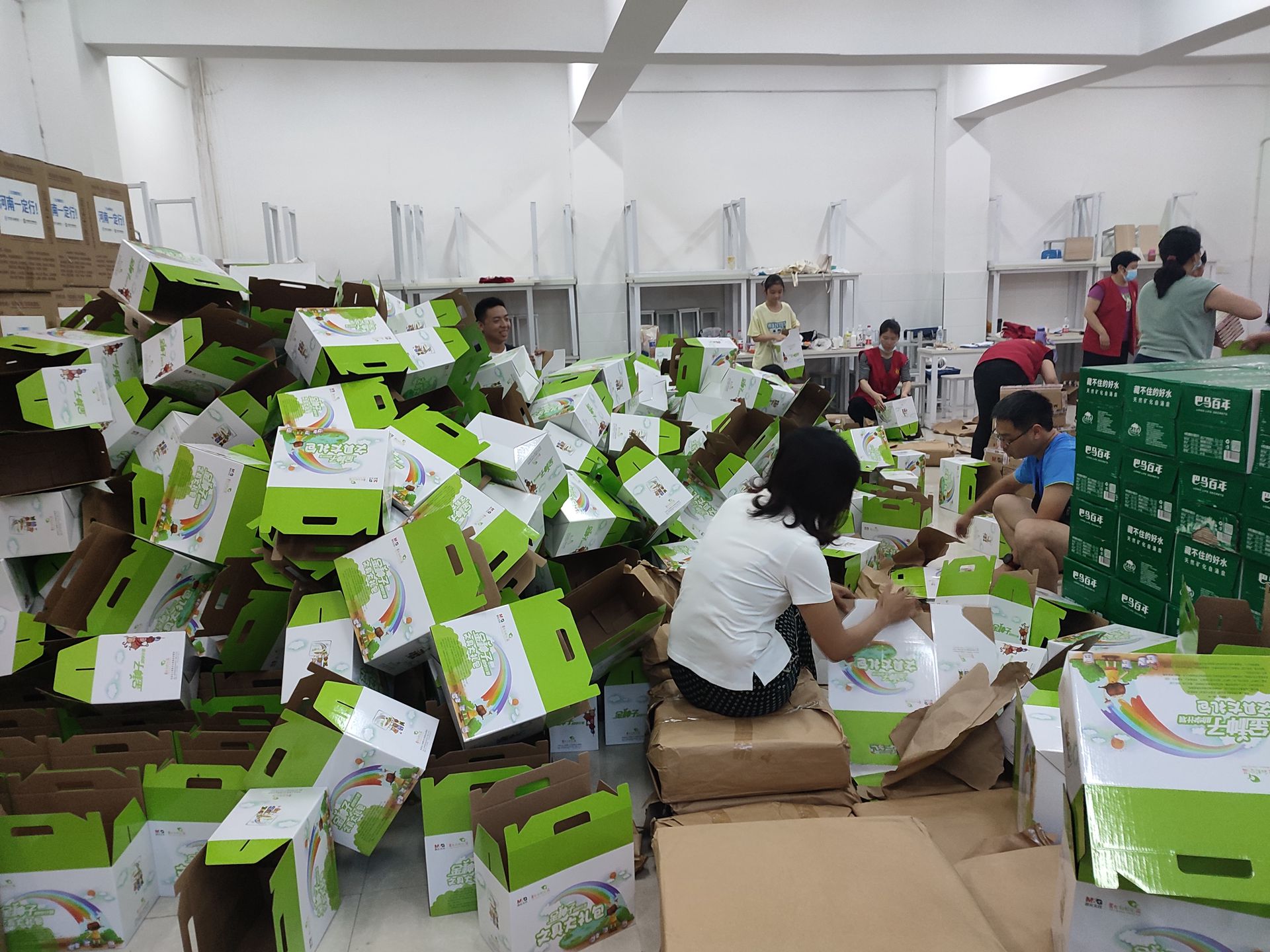 志愿者们分装慰问物资