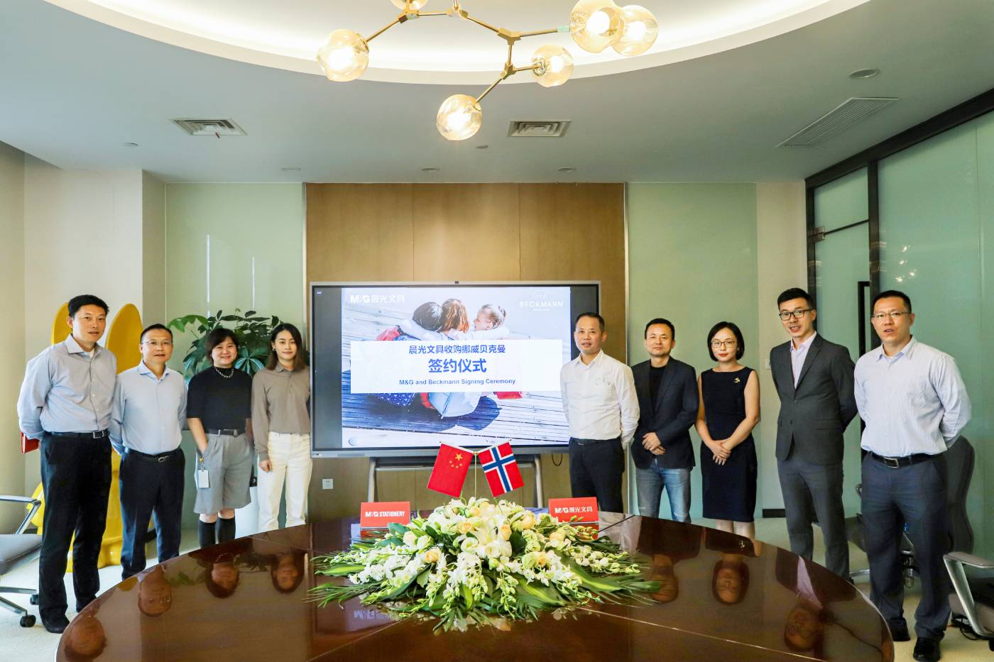 尊龙凯时文具拟收购挪威贝克曼云签约仪式团队合影