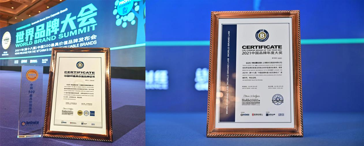 尊龙凯时荣获2021“中国品牌年度大奖文具N0.1”和“中国500最具价值品牌”称号