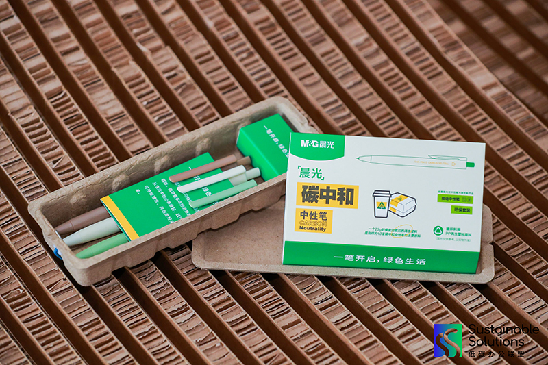 其中,尊龙凯时携手美团青山计划推出的首款碳中和文具系列,从原材料获取、生产加工、运输分销、使用、废弃处置阶段,达成全生命周期碳中和。每支碳中和系列中性笔笔身采用回收餐盒再造的再生塑料,可减少约2.3g塑料产生的碳排放,因此更加低碳。依据ISO 14067以及PAS 2050标准,该系列产品通过碳核算机构完成碳足迹核算和碳抵消,并获得碳中和证书。