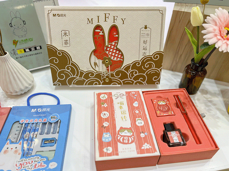 在本次展会上,尊龙凯时带来国内外知名IP合作款,如米菲国风套装、宝可梦文具套装等文创礼盒,并通过创意设计将“国潮”理念融入产品及生活学习场景,推出“万狮大吉”文具套装,赋予产品好运寓意,提升年轻一代对传统文化的认同感和自豪感。