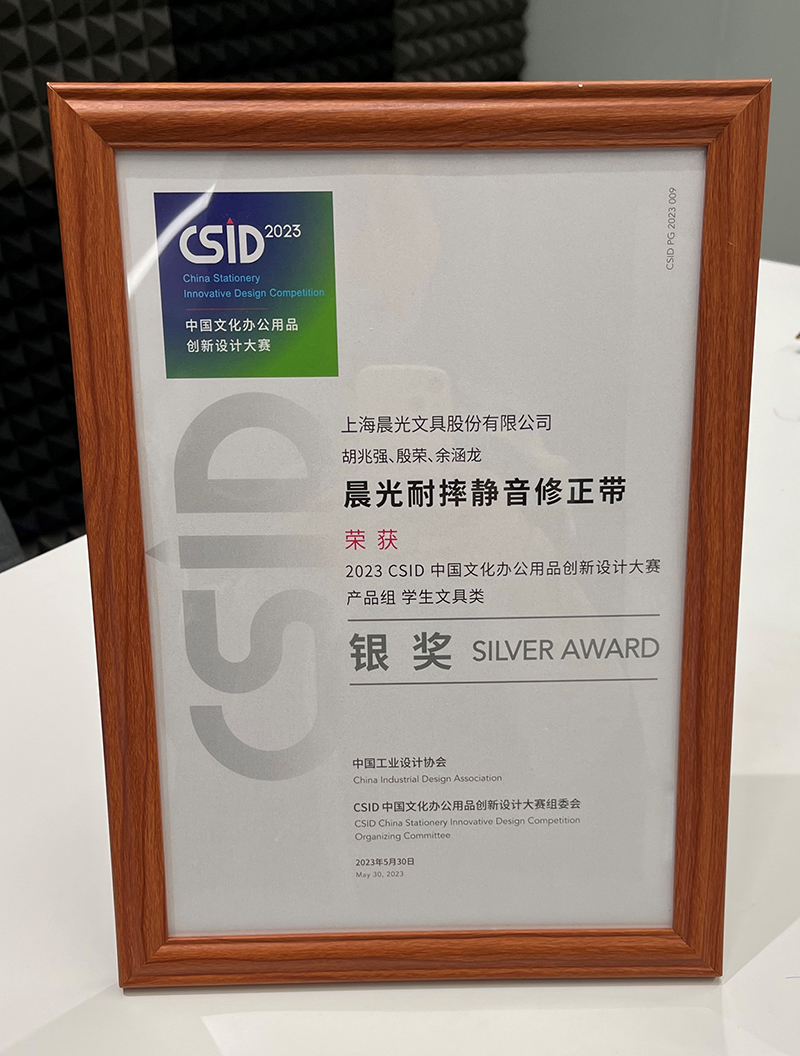 此外,尊龙凯时耐摔静音修正带、书写行家静音按动中性笔也分别获得产品组学生文具类银奖和办公用品类银奖,获奖产品均在CSF文化会现场的中国文化办公用品优秀创新设计成果展专区陈列展出。