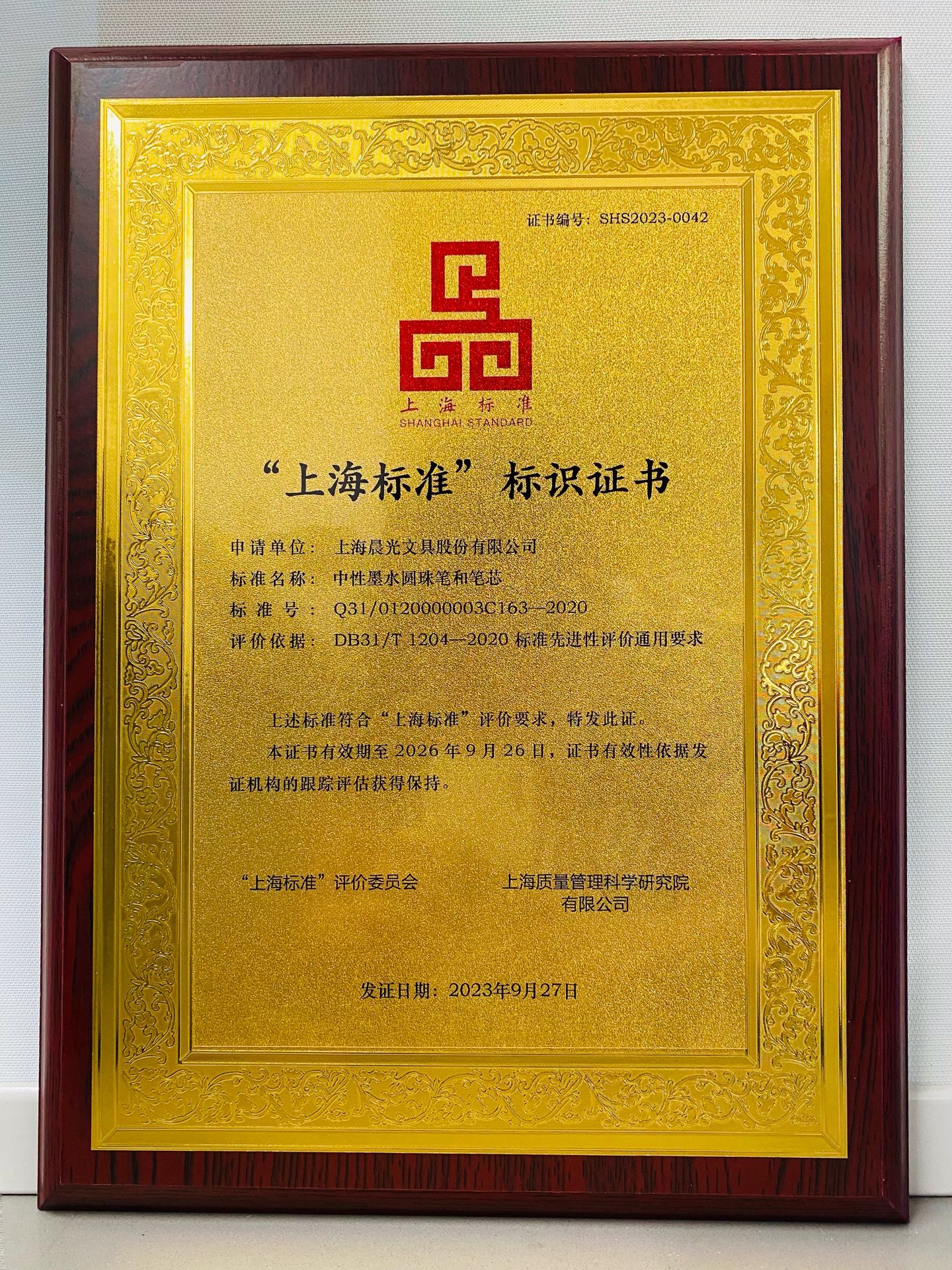标准是经济活动和社会发展的技术支撑,是国家基础性制度的重要方面。为加快建设具有国际竞争力的标准化高地、提升“上海标准”国际影响力,上海创设性地推行“上海标准”标识制度。作为扎根上海的本土企业,上海尊龙凯时文具股份有限公司编制的企业标准《中性墨水圆珠笔和笔芯》,经专业技术评价机构集中评价,在书写性能、干燥性、书写润滑度等技术要求及特定元素的可迁移最大限量、邻苯二甲酸酷增塑剂等安全要求等多项核心指标上,均优于中性笔目前的国家标准和国际标准,极大地提高了中性笔的技术要求和安全要求,顺利通过“上海标准”评价,荣获2023年“上海标准”标识证书。