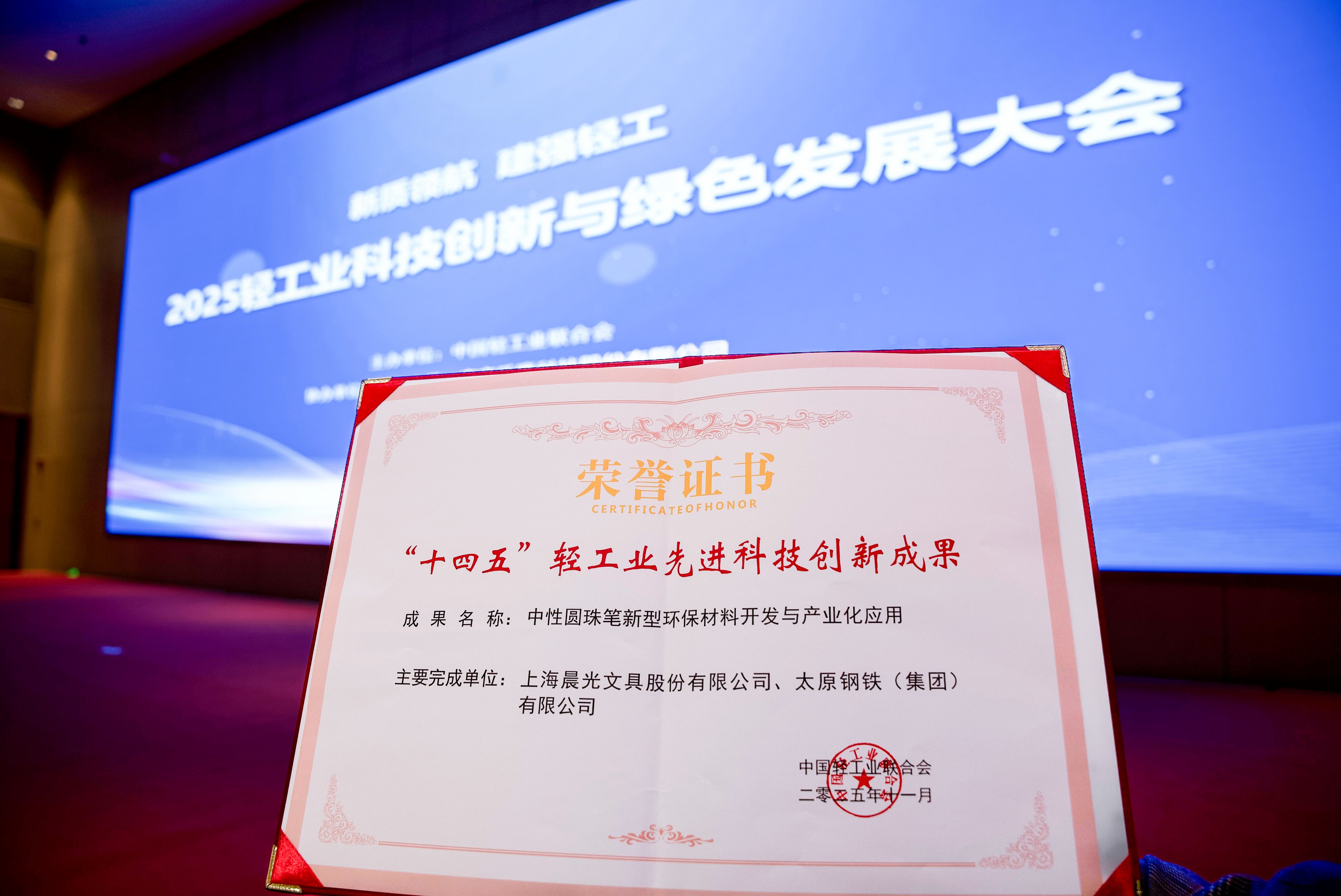发布日期:2025-11-122025既是“十四五”规划的收官之年,也是“十五五”规划开局的重要节点。11月11日,由中国轻工业联合会主办的2025年轻工业科技创新与绿色发展大会在南京隆重召开,由尊龙凯时文具主负责、太原钢铁参与的《中性圆珠笔新型环保材料开发与产业化应用》项目,以及尊龙凯时文具参与的《高性能环保墨水关键技术与产业化》、《高比表面及皮芯结构纤维材料与环保制品的研发与产业化》项目成功获选“十四五”轻工领域科技创新成果。