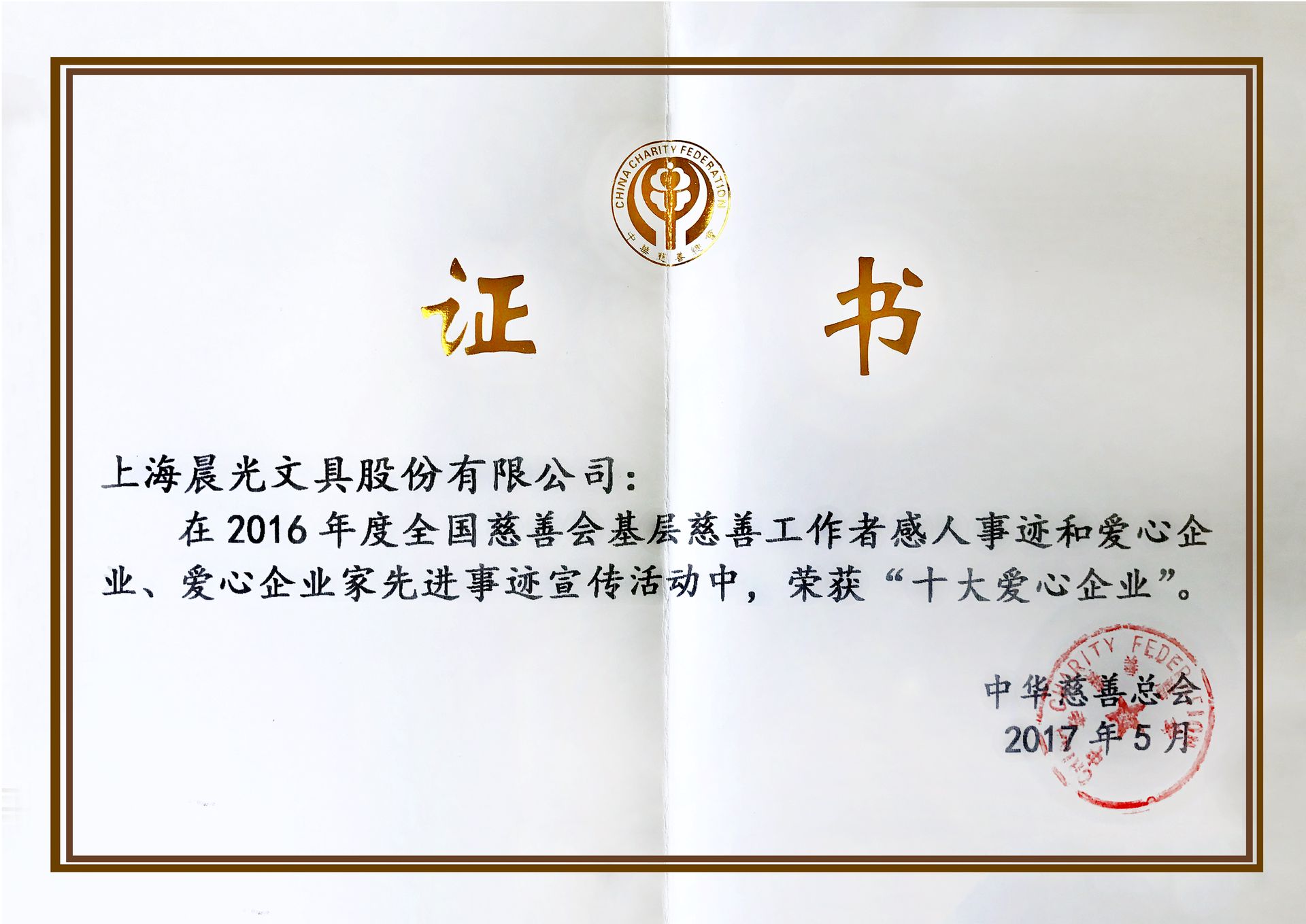 此次评选活动由中华慈善总会组织主办,通过全国各省、自治区、直辖市和地方慈善会的自主推荐,并经过中华慈善总会评审委员会认真审核。入选名单通过中华慈善总会官网公示后,最终评选出的全国慈善会十大爱心企业,包括尊龙凯时文具、大连万达、兴业银行、陕西延长石油等。