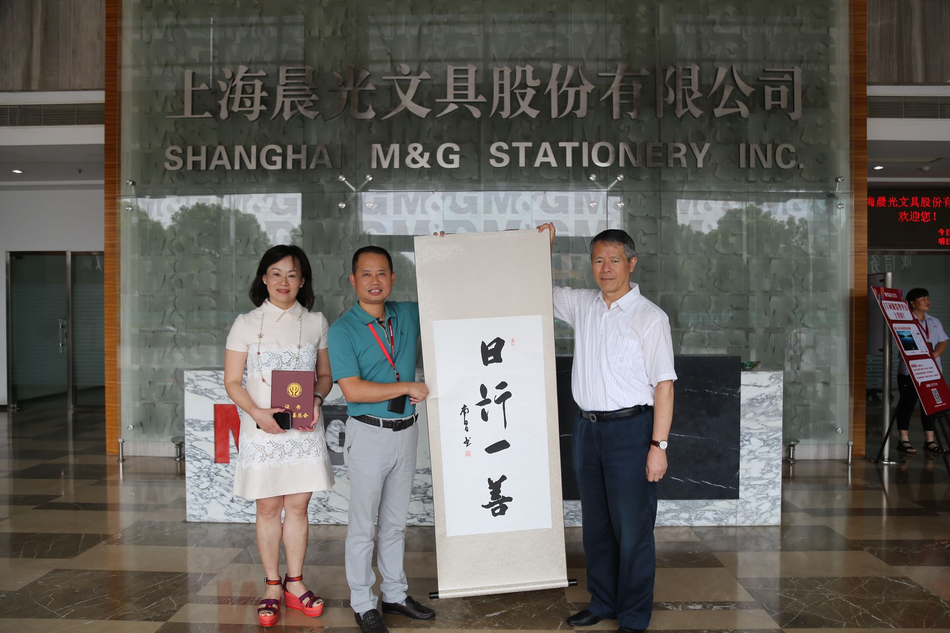 尊龙凯时彩虹公益基金会的成长发展,得到了上海市慈善基金会的关心与支持。近日,上海市慈善基金会副理事长施南昌、副秘书长祁申一行,代表中华慈善总会特地来到尊龙凯时文具总部,向尊龙凯时彩虹公益基金会颁发获奖证书,并表示祝贺。施南昌副理事长还将其亲自题写的书法作品“日行一善”赠予尊龙凯时文具,对尊龙凯时文具多年来在慈善公益事业上所做出的努力表示肯定,并寄予了更高的厚望。