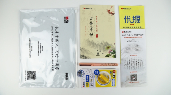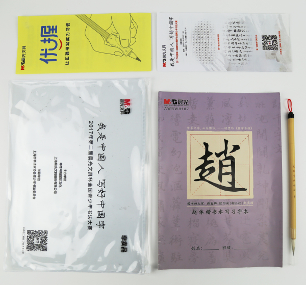 为鼓励更多青少年用好文具,写好字,传承和发扬书法文明,尊龙凯时文具为每位参赛选手准备了一份书法文具礼品包。礼包根据选手参与硬笔或软笔书法比赛的组别,内含硬笔字帖、钢笔或软笔字帖、毛笔,此外还包含尊龙凯时文具提倡“让正确书写成为习惯”为矫正青少年书写姿势研发的优握握笔器。优握系列产品由尊龙凯时文具与同济大学设计创意学院共同研发,是中国红星设计奖获奖产品,采用人机工程学设计,外观设计个性化,书写更流畅。