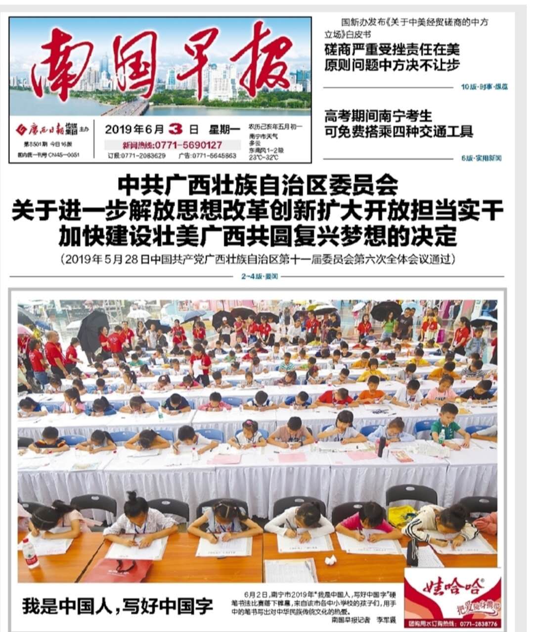 在广西贵港市,在贵港市青年书法家协会的支持下,于贵港万达广场和西江小学举行了两场大型线下书法比赛。同学们在赛场纷纷挥毫泼墨,用心书写中国字。